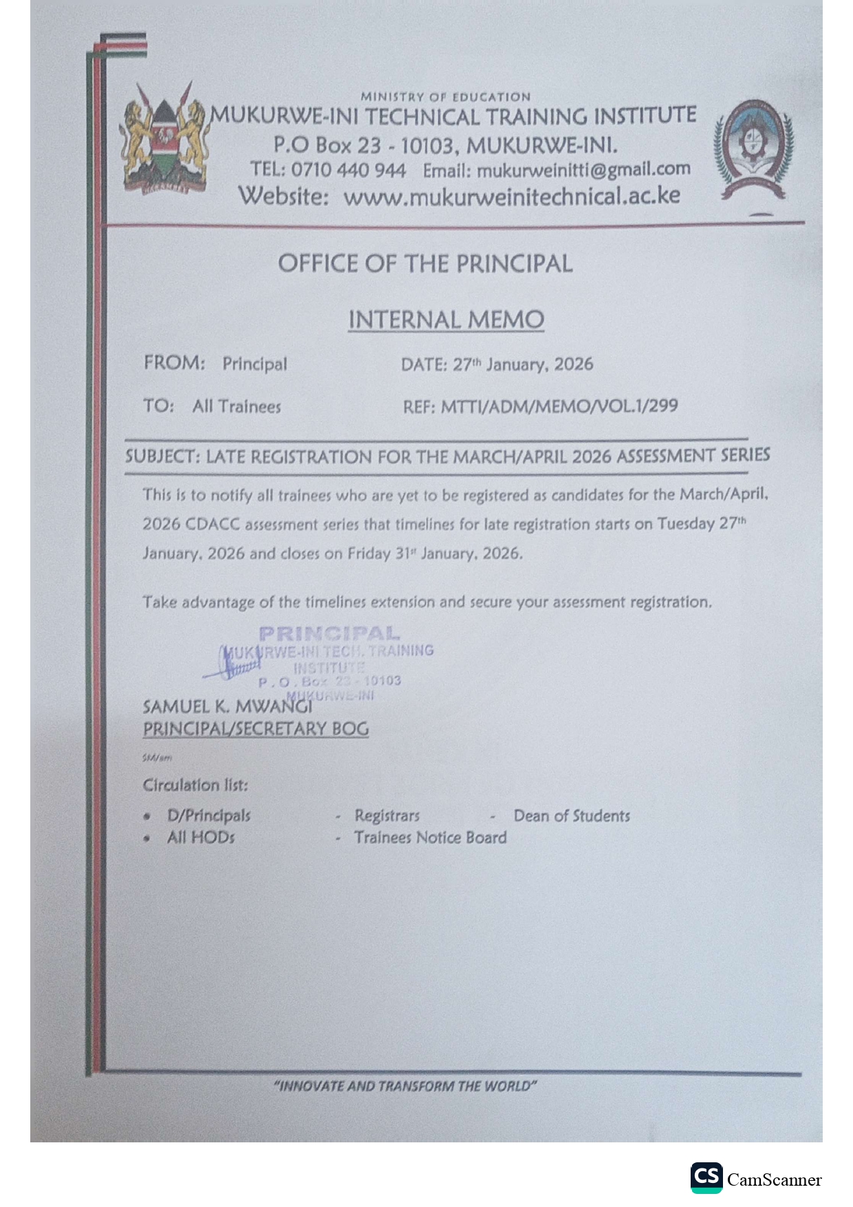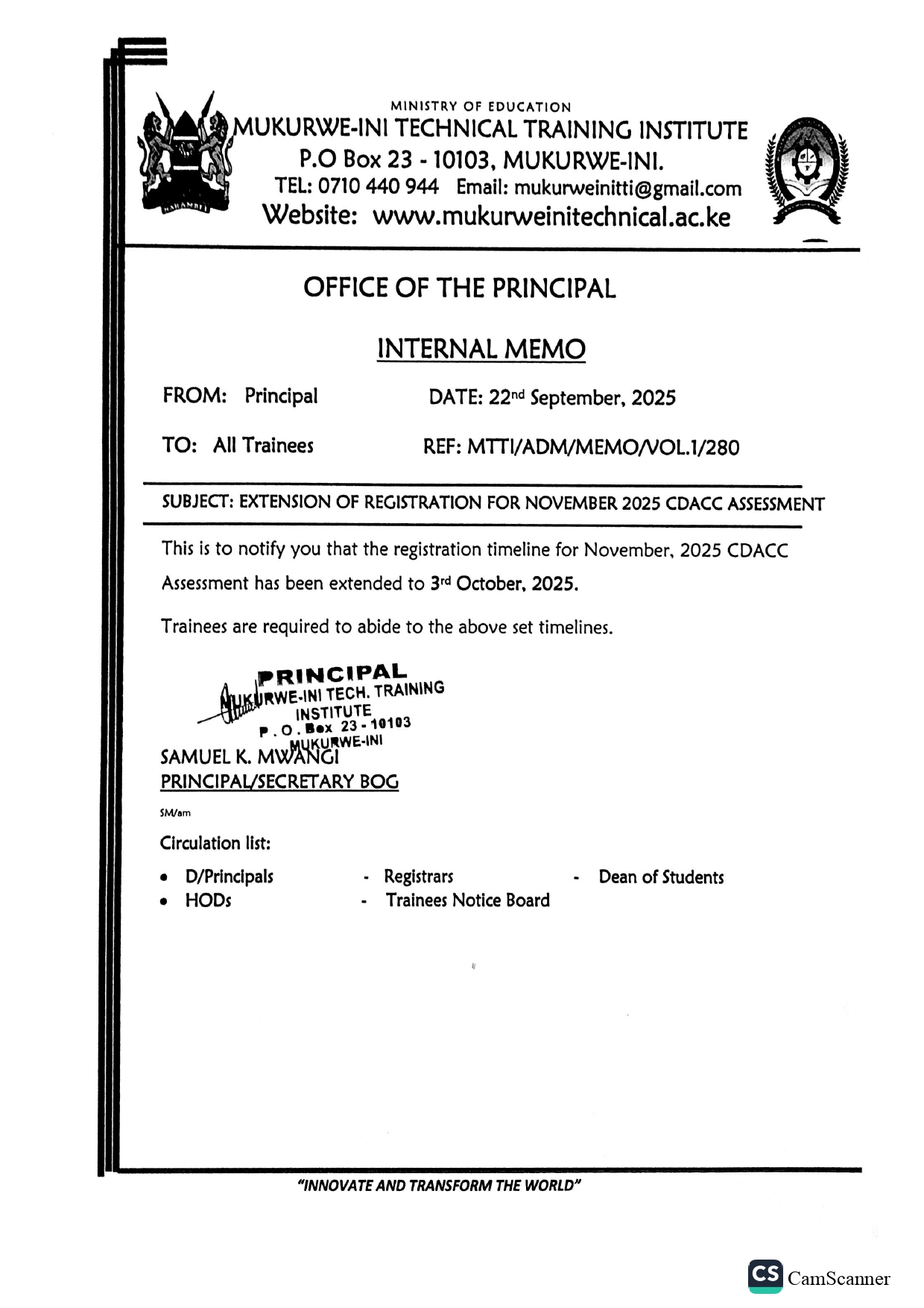 The Board of Governors is the institute’s highest governing body, responsible for developing and setting the general strategic direction of the Institute, so as to ensure proper accountability and for the management of mukurweini technical training institute, finances, property and all resources and the general business of the training Institute.