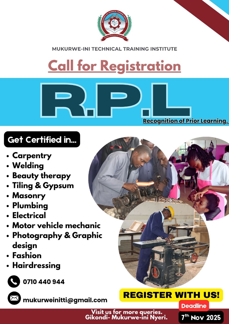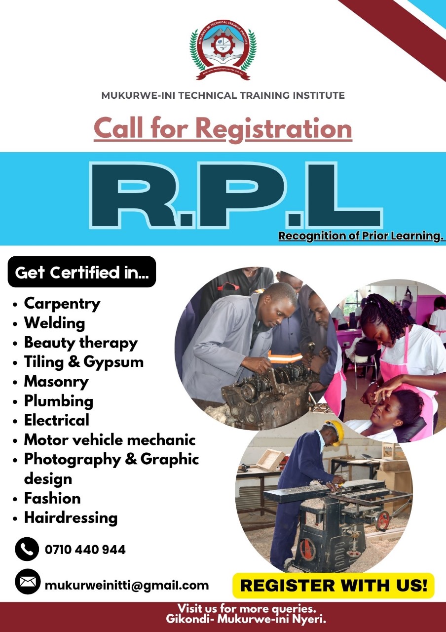 Mukurweini Technical Training Institute. MTTI is committed to educating, preparing and inspiring trainees for vision 2030. We offer both technical and business courses which contribute to a unique learning experience. The institute endeavors to promote demand driven programmes that are in tandem with the rising needs of both the industry and community